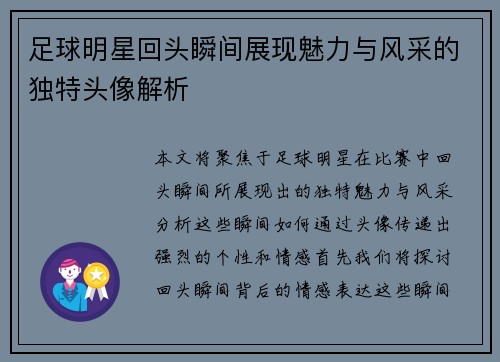 随着社交媒体的迅速发展,越来越多的年轻人通过模仿足球明星的外貌与风格,在各大平台上赢得了大量关注。这种现象不仅展示了青少年对偶像的崇拜,也反映了社交媒体时代自我表达的新方式。本文将从四个方面深入探讨模仿足球明星外貌的年轻人如何在社交媒体上获得关注与热议,包括偶像效应、创造内容、互动参与和社会影响力。在分析这些方面时,我们将具体展示他们是如何通过照片、视频以及个性化的内容来吸引粉丝,并获得广泛讨论。...